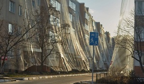 В сети появились кадры антидроновых сеток, которые натягивают сотрудники оперативных служб на многоэтажные дома в Шебекино Белгородской области.Lenta.ru