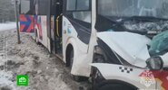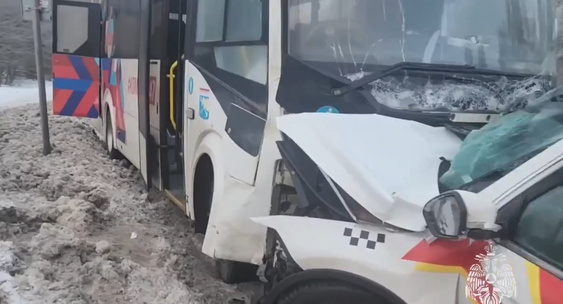 Произошло лобовое столкновение рейсового автобуса, следующего по маршруту №888 и легкового автомобиля Chery Tiggo (такси).РИА Новости