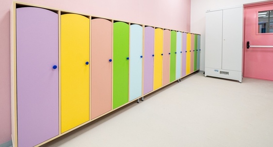 Трехэтажное здание общей площадью 3495 кв. м включает десять групповых комнат с игровыми и спальнями, музыкальный и спортивный залы, кабинеты врача и логопеда, а также пищеблок и прачечную.