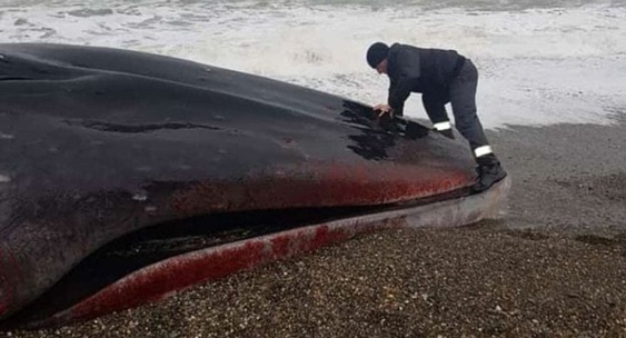 У поселка Октябрьский на Камчатке обнаружили огромный труп кита