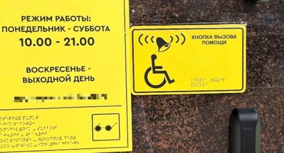 На входе в аптеку отсутствовали вывеска с графиком работы, выполненная рельефно-точечным шрифтом Брайля, и кнопка вызова специалиста, что нарушало права инвалидов на доступность.Московский Комсомолец Питер