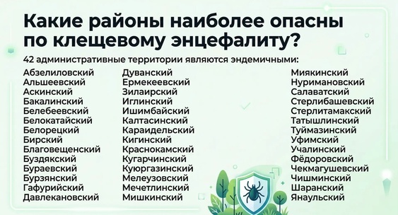 В Башкирии обнародовали полный перечень эндемичных территорий по клещевому вирусному энцефалиту за 2025 год.Кумертауское Время