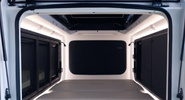 Пять больших боковых окон можно заменить аксессуарами, крыша поднимается, высота потолка достигает двух метров.110KM