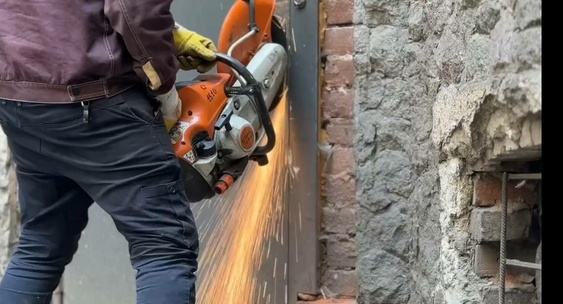 Нарушитель замуровал вход внутри подъезда, создав скрытый проход, и установил новую входную группу для беспрепятственного доступа к складу.Piter.tv