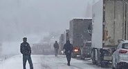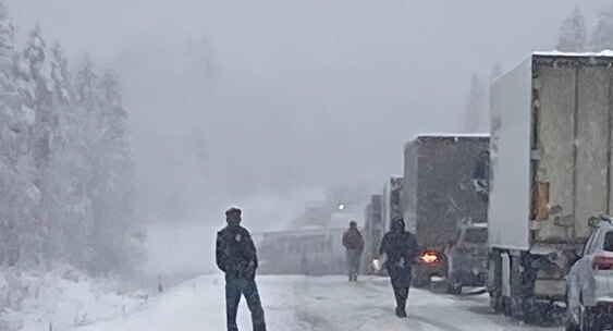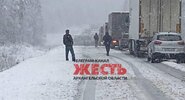 Водитель грузовика не справился с управлением, тягач съехал с дороги, полуприцеп перекрыл трассу.ТАСС