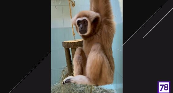 Несмотря на свой возраст, гиббон остаётся очень активным и любознательным.78.ru