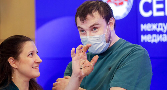 "Данная операция включает в себя одномоментную трансплантацию левой кисти. С участком предплечья и трех пальцев на правой руке. И трех пальцев на правой руке. У эксперимента как раз были дефекты. У него только два пальца было на правой руке. И не было левой кисти", - рассказал Аслан Балкаров, заведующий научным отделением трансплантации почки и поджелудочной железы НИИ СП им. Н.В. Склифосовского.