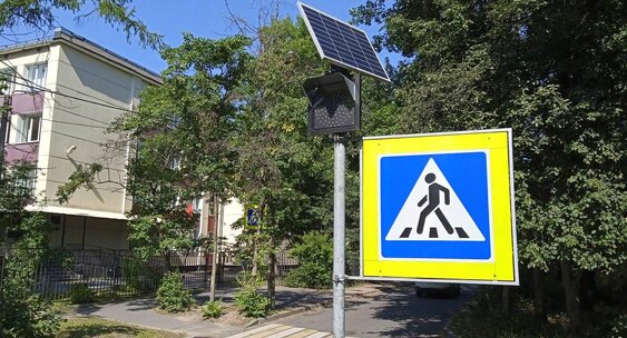 Светофоры Т7 используются как дополнительное оборудование на нерегулируемых пешеходных переходах, чтобы привлекать внимание водителей и повышать безопасность дорожного движения.Вечерний Санкт-Петербург