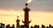 В день основания Петербурга зажглись факелы Ростральных колонн