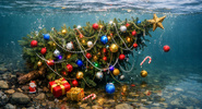 Новогодняя елка с украшениями рухнула в Мойку из-за сильного ветра