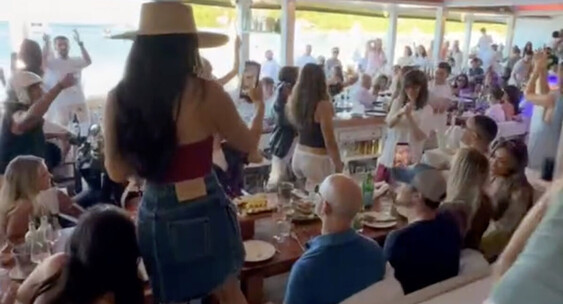 По информации очевидца, как только в зал вошли девушки в бикини с бенгальскими огнями, Санчес мгновенно поднялась и начала танцевать.Ридус