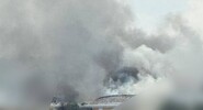 Строение практически полностью обволокло густым серым дымом, который возник из-за возгорания после атаки БПЛА.Газета.Ru