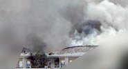 На фотографии видно, что верхние этажи здания получили серьёзные повреждения, фасад покрыт копотью, а вокруг клубится густой серый дым.Рязань Онлайн