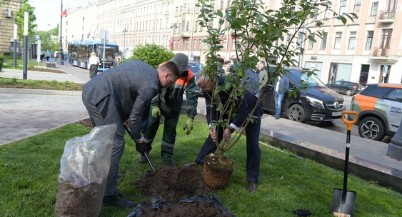 Одно из деревьев высадили вице-губернатор Алексей Корабельников совместно с председателем Северо-Западного банка Сбербанка Дмитрием Суховерховым.78.ru