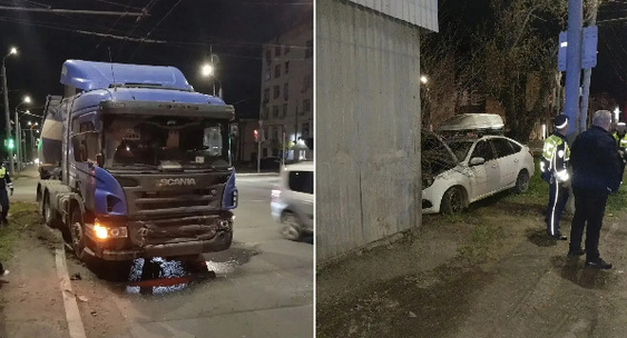 В Оренбурге на перекрестке улиц Шевченко и Леушинской столкнулись «Лада Гранта» и грузовик Scania.КП - Оренбург