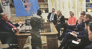 Снимок, сгенерированный искусственным интеллектом, показывает Трампа во время встречи с европейскими лидерами, включая президента Франции Эммануэля Макрона и главу Еврокомиссии Урсулу фон дер Ляйен, передает ТАСС.Взгляд.ру