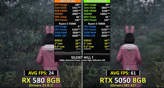 В одном из выпусков на YouTube-канале NJ Tech проверили в Full HD видеокарты RX 580 и RTX 5050.Ferra