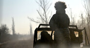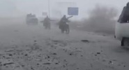 На них бойцы под покровом тумана двигаются по пустой дороге пешком и на машинах.Общественная служба новостей