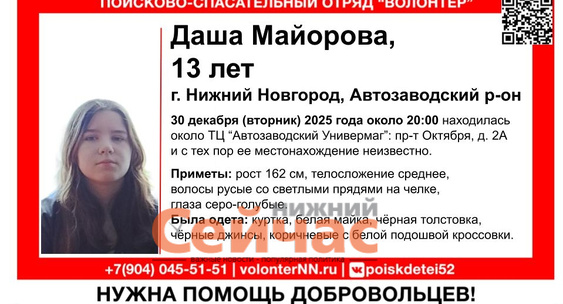 13-летняя школьница, которая пропала в Нижнем Новгороде накануне Нового года, найдена живой.НИА Нижний Новгород