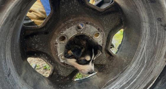 UPI: пожарные в США помогли выбраться застрявшему головой в колесе щенку