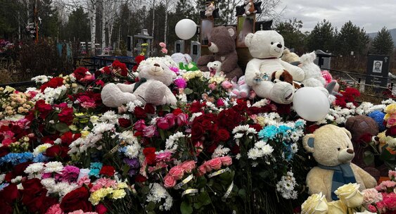 На кладбище привезли цветы и игрушки, которые приносили к стихийному мемориалу на месте трагедии.КП - Екатеринбург