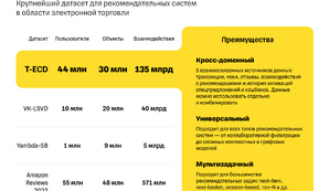 Центр искусственного интеллекта группы «Т-Технологии» выложил в открытый доступ T-ECD (T-Tech E-commerce Cross-Domain Dataset) — один из крупнейших в мире датасетов для рекомендательных систем в области электронной торговли.CNews