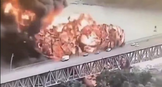 Пожарные пока сообщают с места лишь о возгорании и детонации трёх грузовиков и дополнительных цистерн с топливом.ANNA-News