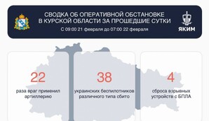 За минувшие сутки (с девяти утра 21 февраля до семи утра 22 февраля) Курская область десятки раз подвергалась атакам со стороны ВСУ.Друг для друга (Курск)