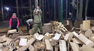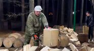 На опубликованных кадрах видно, как одетый в камуфляж глава государства берет в руки топор и рубит поленья.Lenta.ru