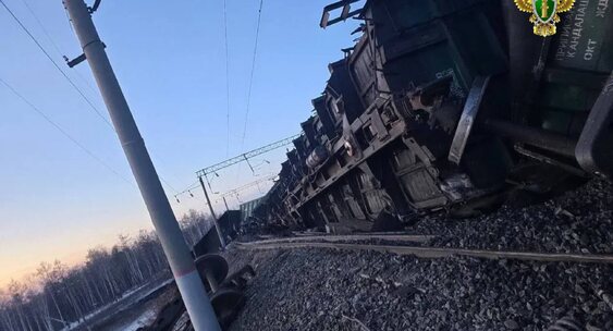 На перегоне Гонжа — Гудачи Забайкальской железной дороги в Амурской области 35 вагонов грузового поезда сошло с рельсов.RT на русском