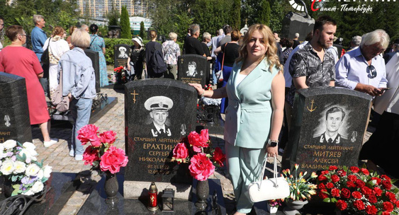 В торжественно-траурной церемонии приняли участие главнокомандующий Военно-Морским Флотом России адмирал Александр Моисеев и родственники погибших.Вечерний Санкт-Петербург