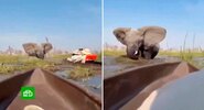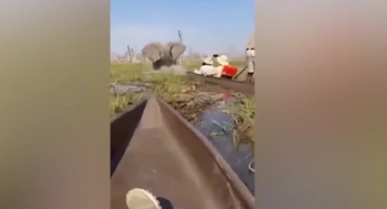 В Ботсване слон опрокинул каноэ с туристами и едва не затоптал женщину