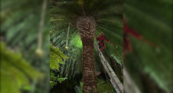 В Ботаническом саду Петра Великого украсили пальму к Новому году