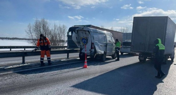 Автомобиль Isuzu въехал в «Газель» дорожной службы, стоящую с правой стороны дороги за рабочими, которые чистили ограждение.Тюменская линия