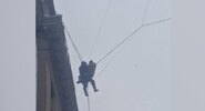 Появились кадры спасения дворника, повисшего на проводах дома на улице Правды