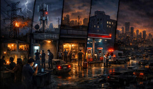 «На изображении город, который еще стоит, но уже ломается по цепочке. Россияне уничтожают нашу энергетику, истощив наше ПВО. Слева обесточенные линии электропередач, искры и аварии, энергетика постепенно исчезает», — написал Федиенко.Телеканал 360°