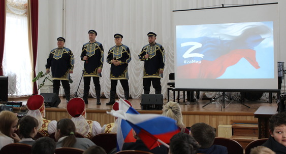 С чувством особого долга и патриотизма зрители стоя слушали песни «Дай ему сил, чтобы он победил» и «Гимн народного единства», которые исполнили вокальная группа Районного Дома культуры и народный ансамбль «Удальцы».