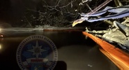 Спасатели установили боновые заграждения на реке, чтобы ограничить дальнейшее распространение нефти.РЕН ТВ