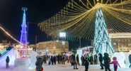 В Челябинске на центральной площади открылся ледовый городок.Первый областной