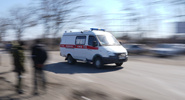 Женщину с осколочным ранением стопы бригада скорой доставляет в городскую больницу №2 Белгорода.ТАСС