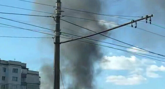 На записи можно увидеть огромный столб дыма, вздымающийся над местом событий.Силовой блок