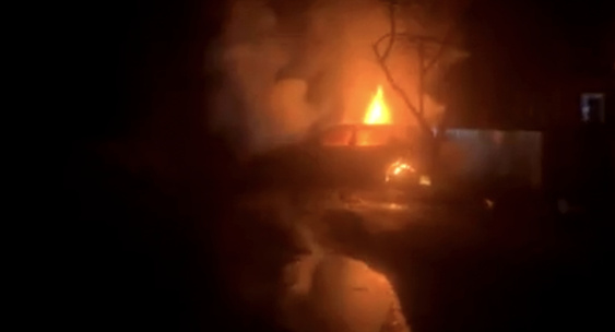 На видео, которое опубликовал политик из Радикальной партии Олега Ляшко, видно горящий автомобиль.ТАСС