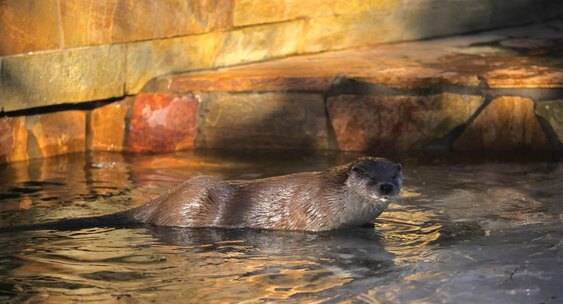 Выдра Финик берет от жизни все и встречает осенний холод в бассейне.Фонтанка.Ру