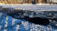 Автомобиль провалился в трещину и ушел под воду за несколько секунд.РЕН ТВ