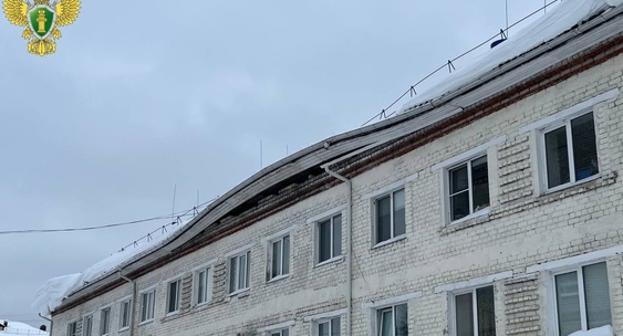Под тяжестью образовавшегося сугроба часть пролёта кровли деформировалась.MariMedia