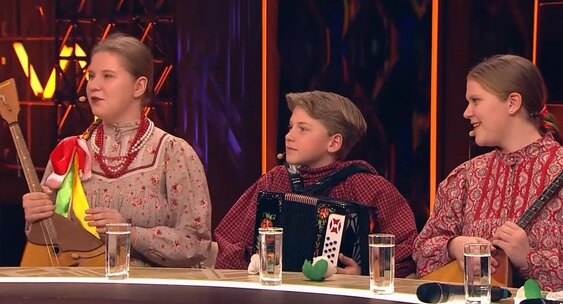 Во время эфира брат и сестры исполнили хит «Ласкового мая» о белых розах, подарив зрителям и ведущему собственноручно изготовленные бумажные цветы.КП - Новосибирск