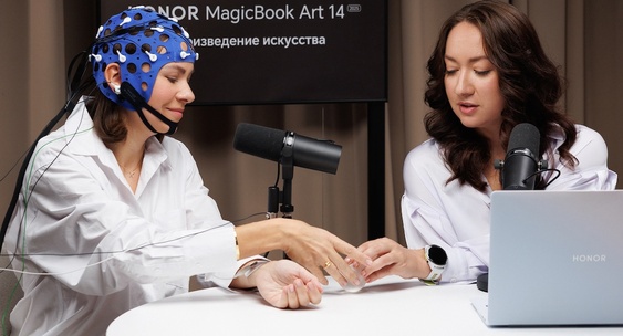 В исследовании использовались сенсоры, фиксирующие активность мозга и реакцию на различные материалы, в том числе на ноутбук HONOR MagicBook Art 14.Ferra