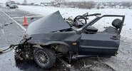 ВАЗ разорвало пополам в ДТП под Кемерово, два человека погибли