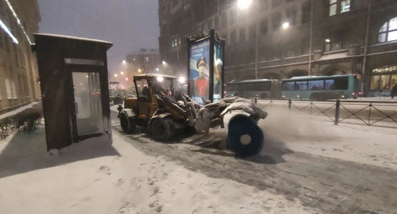 Спецтехника возвращается на второй круг после уборки всех центральных улиц.Телеканал Санкт-Петербург