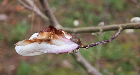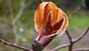 В результате раннего цветения нежные лепестки магнолии получили медный оттенок из-за низких ночных температур.КП - Кубань